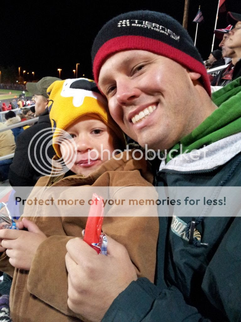 Dusty and I gave the kids a choice at dinner last night, that they could either go to the homecoming football game for our school district that evening, or they could go to the carnival at our gym the following morning but that they couldn't do both. Max was adamant he was going to watch football with his dad. His mind was made up the moment he had his choices and he and Daddy seemed to enjoy themselves.